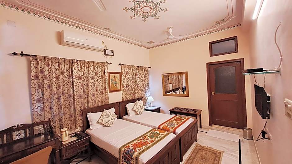 Indulge in a spacious Deluxe Double or Twin Room, perfect for 2 adults and 1 child, featuring a comfortable double bed, air conditioning, and a private terrace with garden views.